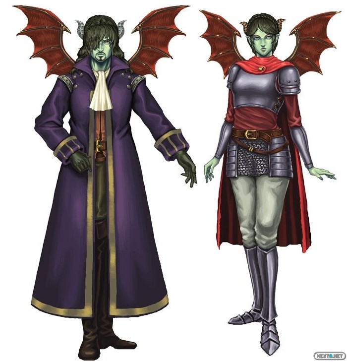 Mitad demonio, mitad humano, esta raza puede equiparse con objetos malditos que pueden utilizar gracias a su sangre demoníaca.