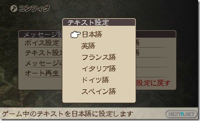 - Además del japonés, la versión japonesa cuenta con textos en francés, italiano, alemán y español, pero los menús y textos de estos continuarán en japonés (en la imagen, la última opción es "Español")