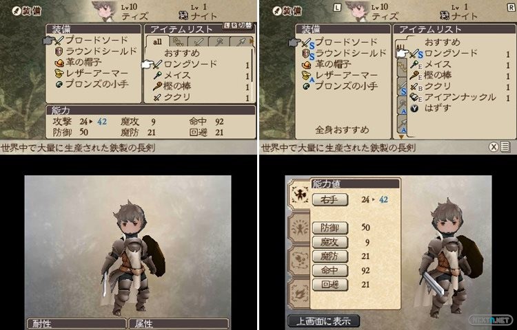 - Lista de equipamiento ahora es más larga, pero requiere menos desplazamiento, puesto que la pantalla táctil contará con atajos a esta (izquierda corresponde al original, la de la derecha a "For the Sequel"