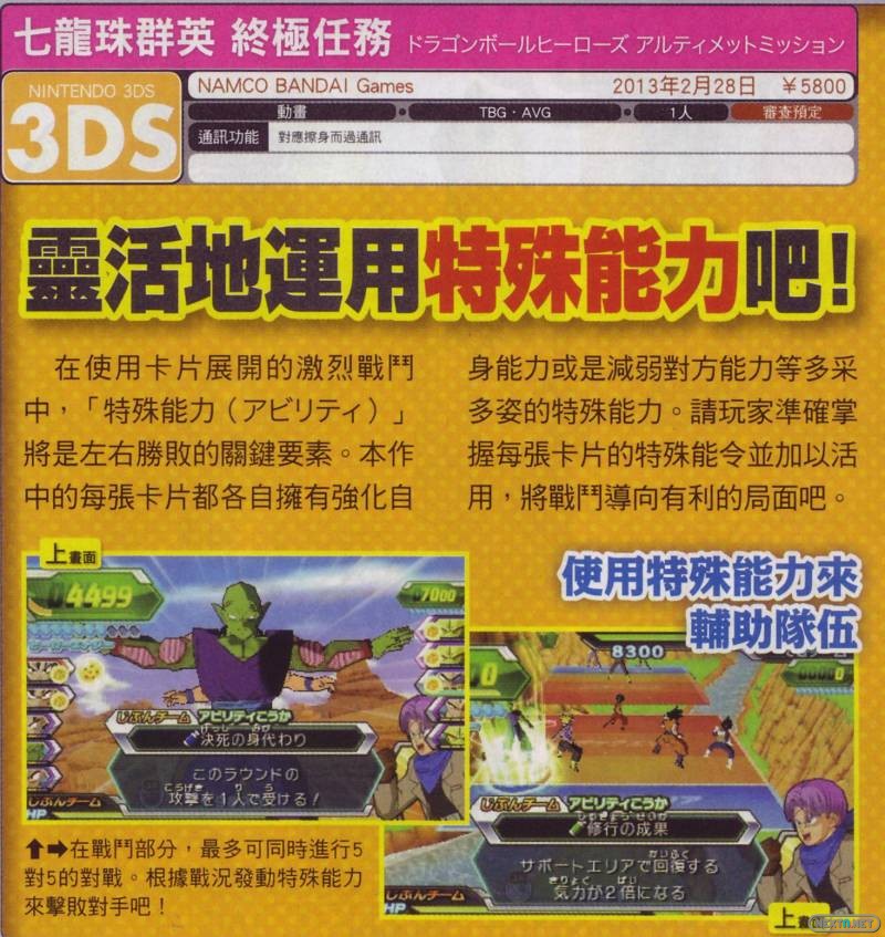 El primer representante de la saga Dragon Ball para la portátil esteoroscópica de Nintendo es un videojuego de cartas coleccionables llamado Dragon Ball Heroes: Ultimate Mission, del cual os hemos hablado en varias ocasiones.