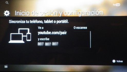 A continuación nos pedirá que vayamos al navegador de nuestro dispositivo inteligente e introduzcamos la URL youtube.com/pair y un código de sincronización de 9 cifras. Este número cambiará si desemparejamos el dispositivo.
