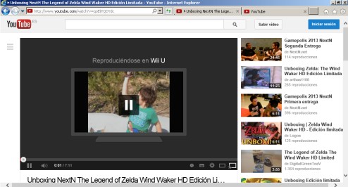 A partir de entonces, los vídeos que reproduzcas desde tu navegador se verán directamente en la pantalla de la televisión o el Wii U GamePad, como veréis que indicará en la ventana del vídeo de YouTube de tu equipo: