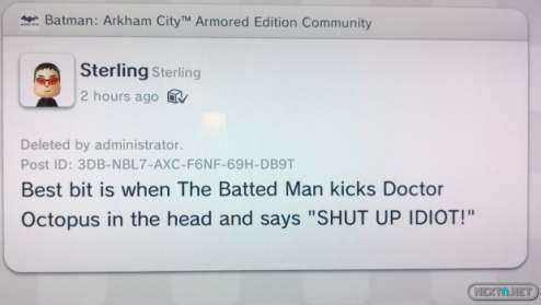 El mal lenguaje no será permitido en Miiverse: palabra malsonante, borrada al instante (o parece que en dos horas por el administrador).
